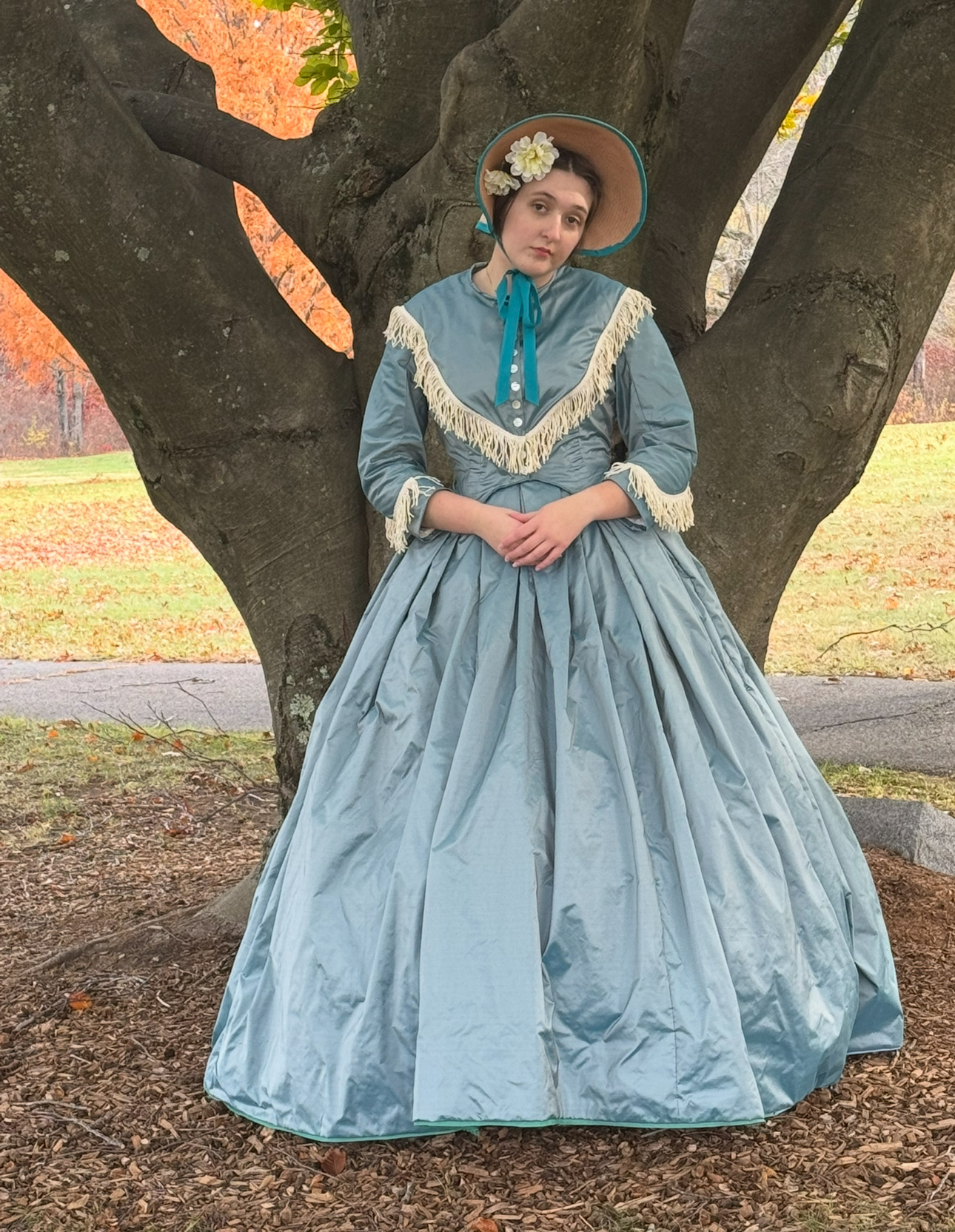 Right now I’m in the process of making an evening bodice for my transformation gown, which is a dress with one skirt and multiple bodices. Skirts in the 1850s and ’60s were so large that it was common for women to have one skirt with multiple tops made to go with it.